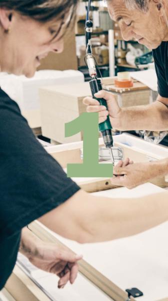 Vi bruger danske spånplader bestående af 80% genanvendeligt materiale.
